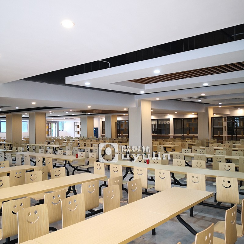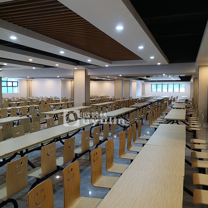 該項目是江門學校食堂餐桌椅定制采購項目,所以選擇桌椅的時候強調座位數要多,而且桌椅以固定為主,強調美觀得來又耐用。因此選的是連體餐桌椅,材質的為防火板和不銹鋼桌腳組成,打造溫馨舒適的食堂餐廳。